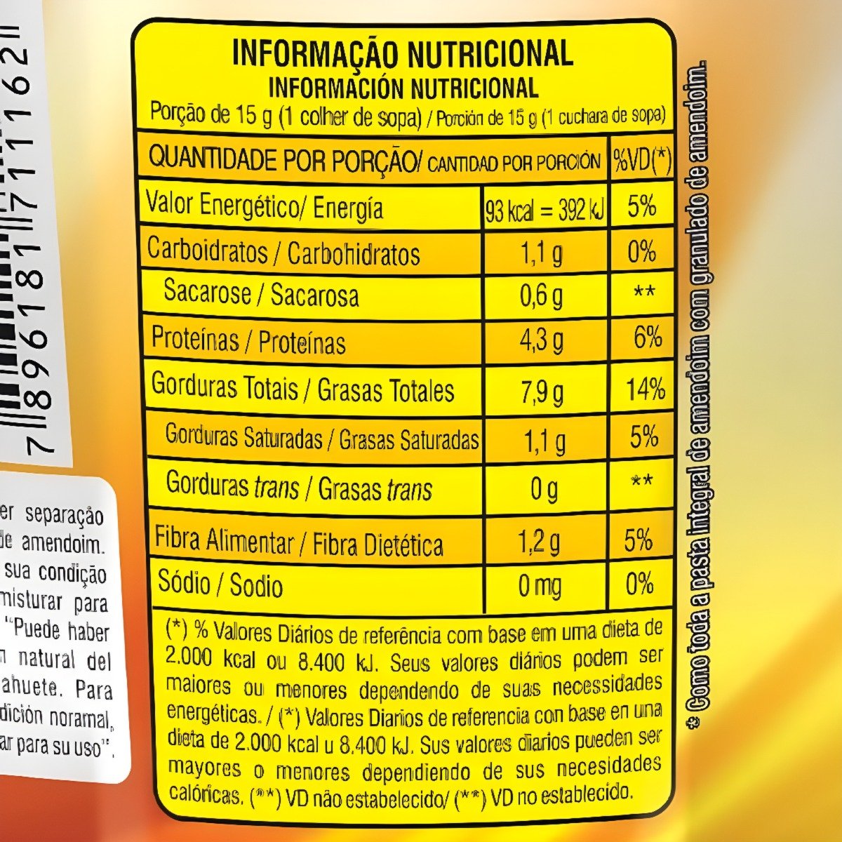 Al abrir por primera vez el frasco, se recomienda revolver desde el fondo para lograr una textura bien cremosa ya que el reposo causa una separación natural del maní y su aceite.