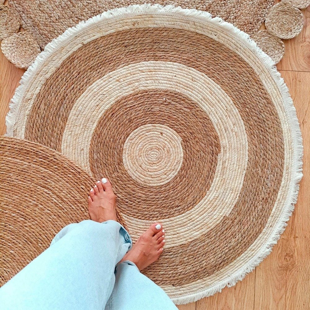 ¡Dale un toque cálido, natural y con mucha onda a tus espacios! Esta alfombra redonda de yute y seagrass de 1 metro es el detalle decorativo perfecto para transformar cualquier rincón con estilo mediterráneo, bohemio o rústico chic. Ideal para quienes buscan una decoración ecológica, artesanal y en tendencia.