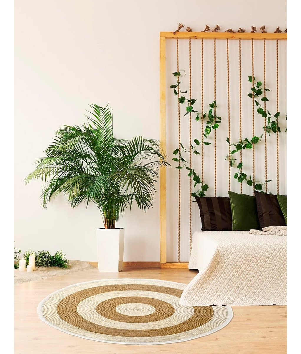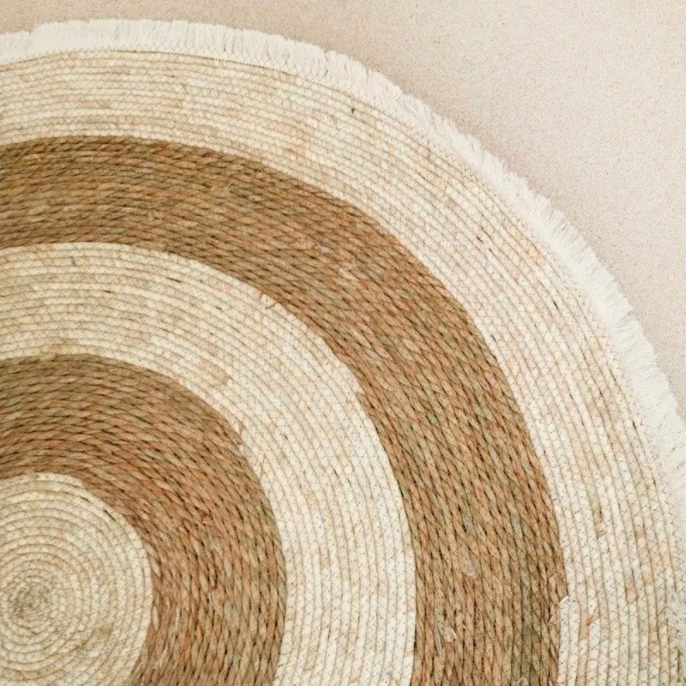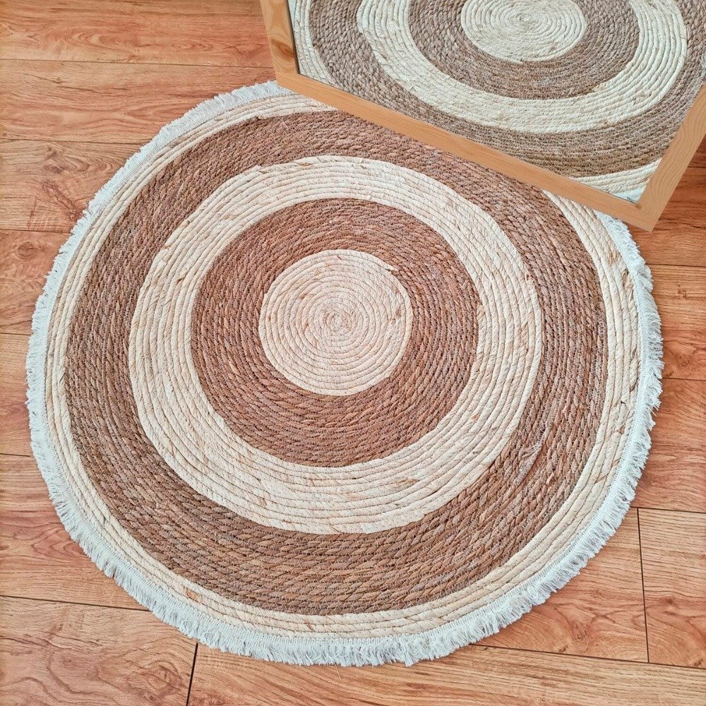 Alfombra Yute Redonda 1m Con Flecos Estilo Natural Eco Seagrass