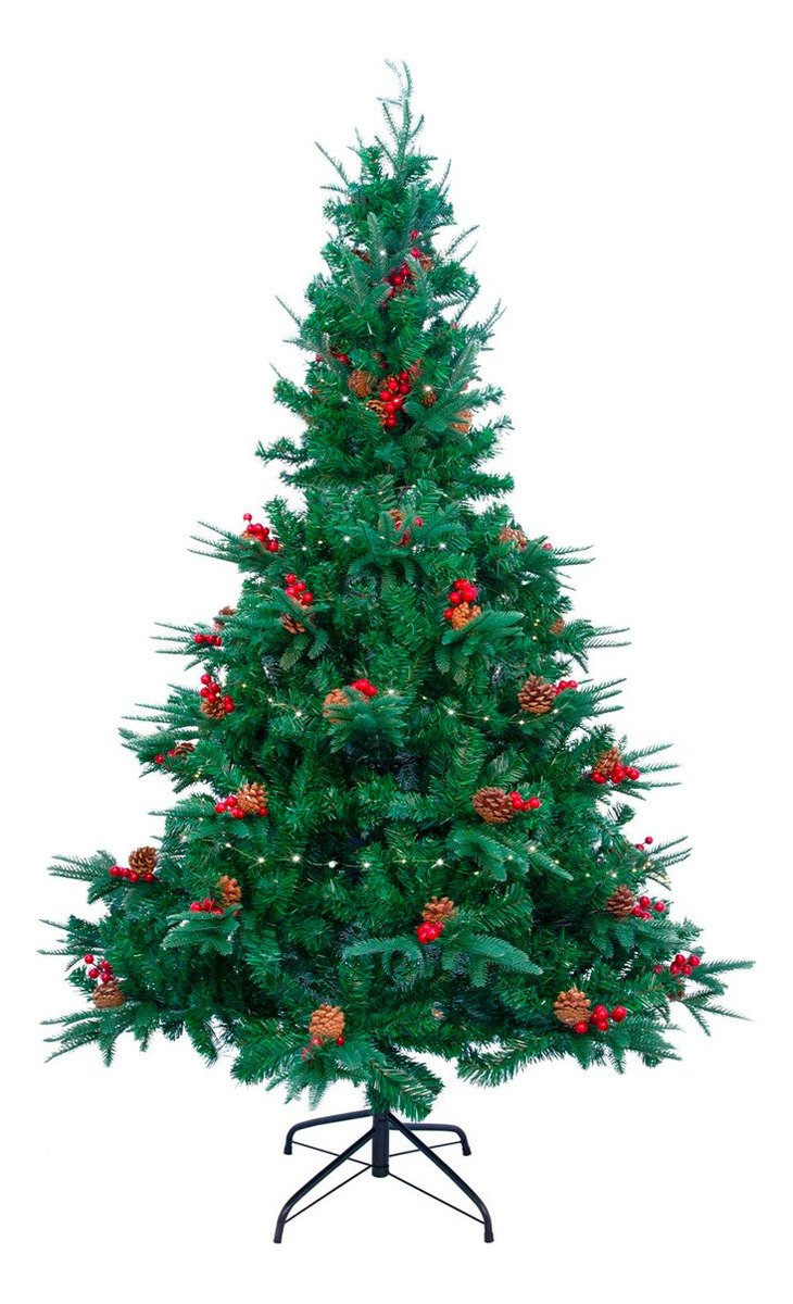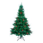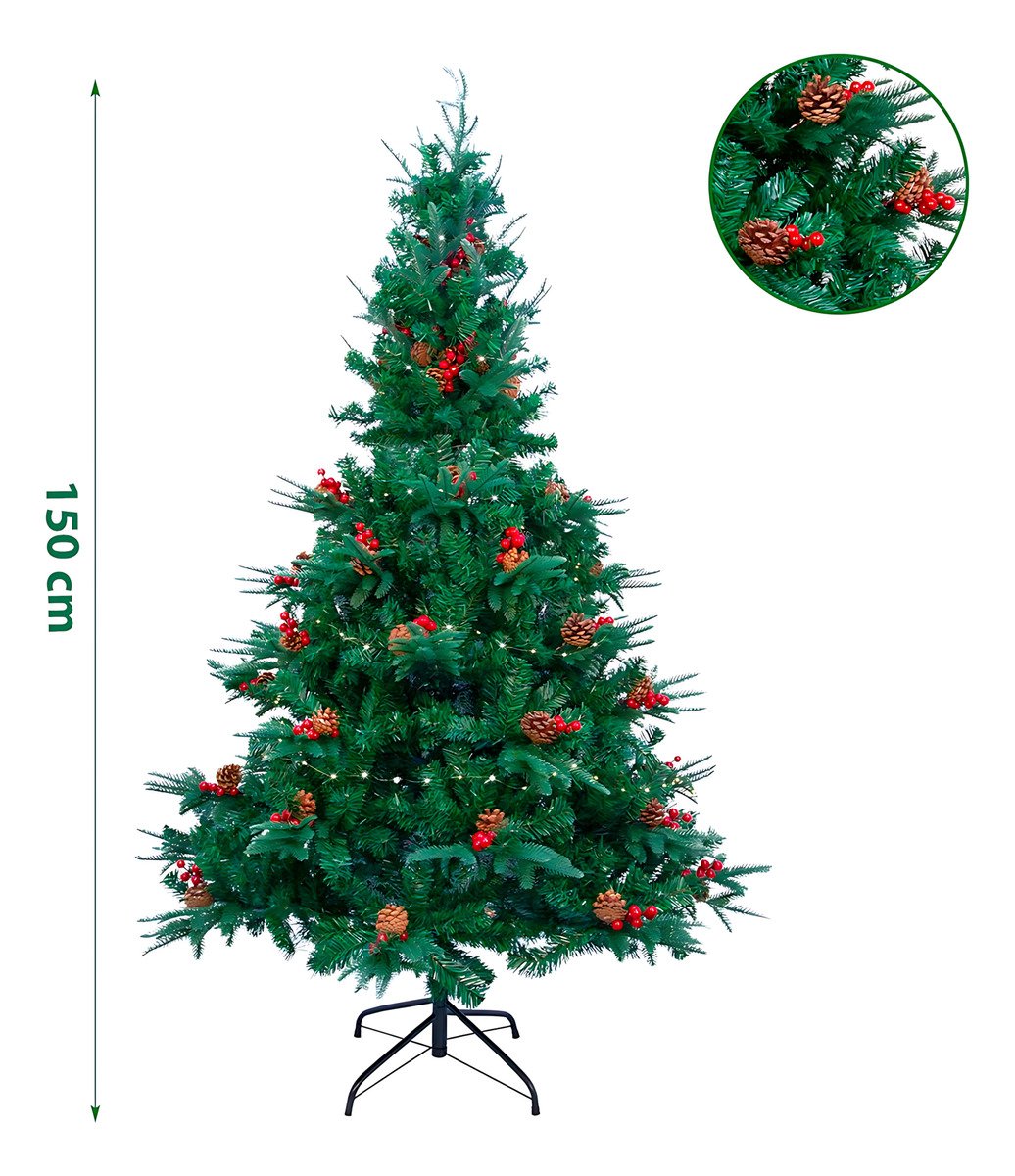 Árbol de Navidad 150cm Decorado con Piñas y Frutos Rojos – 450 Ramas Realistas, Fácil Armado