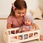 El set trae una cuna plástica resistente para dormir a la muñeca, junto con accesorios esenciales para el juego de crianza. Estimula el juego simbólico, mejora la empatía y desarrolla habilidades motoras finas en los niños.