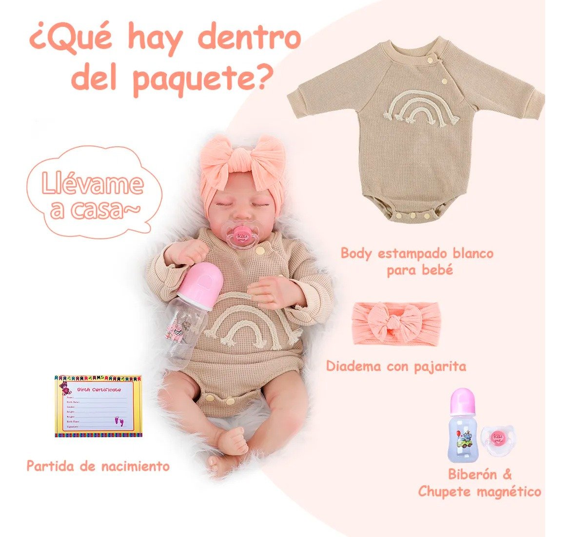 Bebote Reborn Hiperrealista 50 Cm – Vinilo y Silicona Premium – Muñeca Realista Tipo Recién Nacida