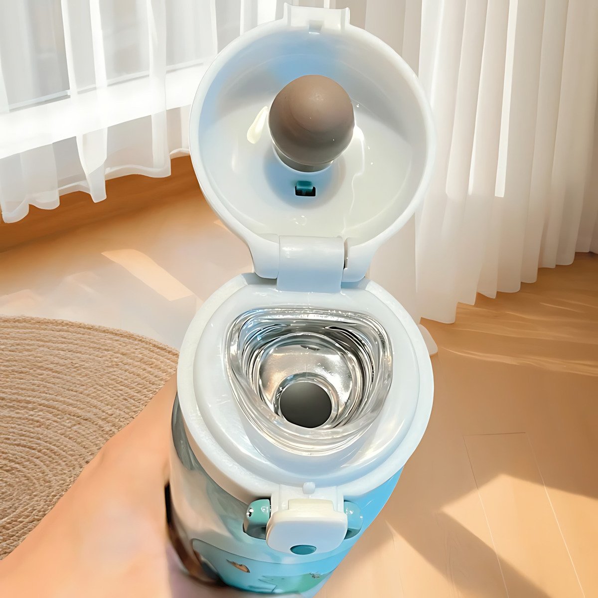 Diseño práctico y seguro, con pico duro y cierre press click, ideal para manos pequeñas. Además, es antiderrame, lo que lo hace perfecto para llevar al colegio, paseos o la casa sin preocuparte por derrames.
