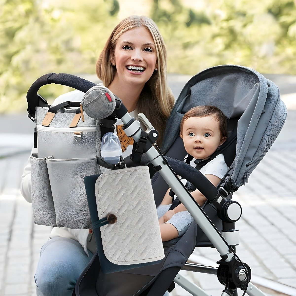 Equipado con un práctico bolsillo de malla y bolsillos elásticos, este cambiador es ideal para guardar chupetes, juguetes para la dentición y otros accesorios esenciales para tu bebé.