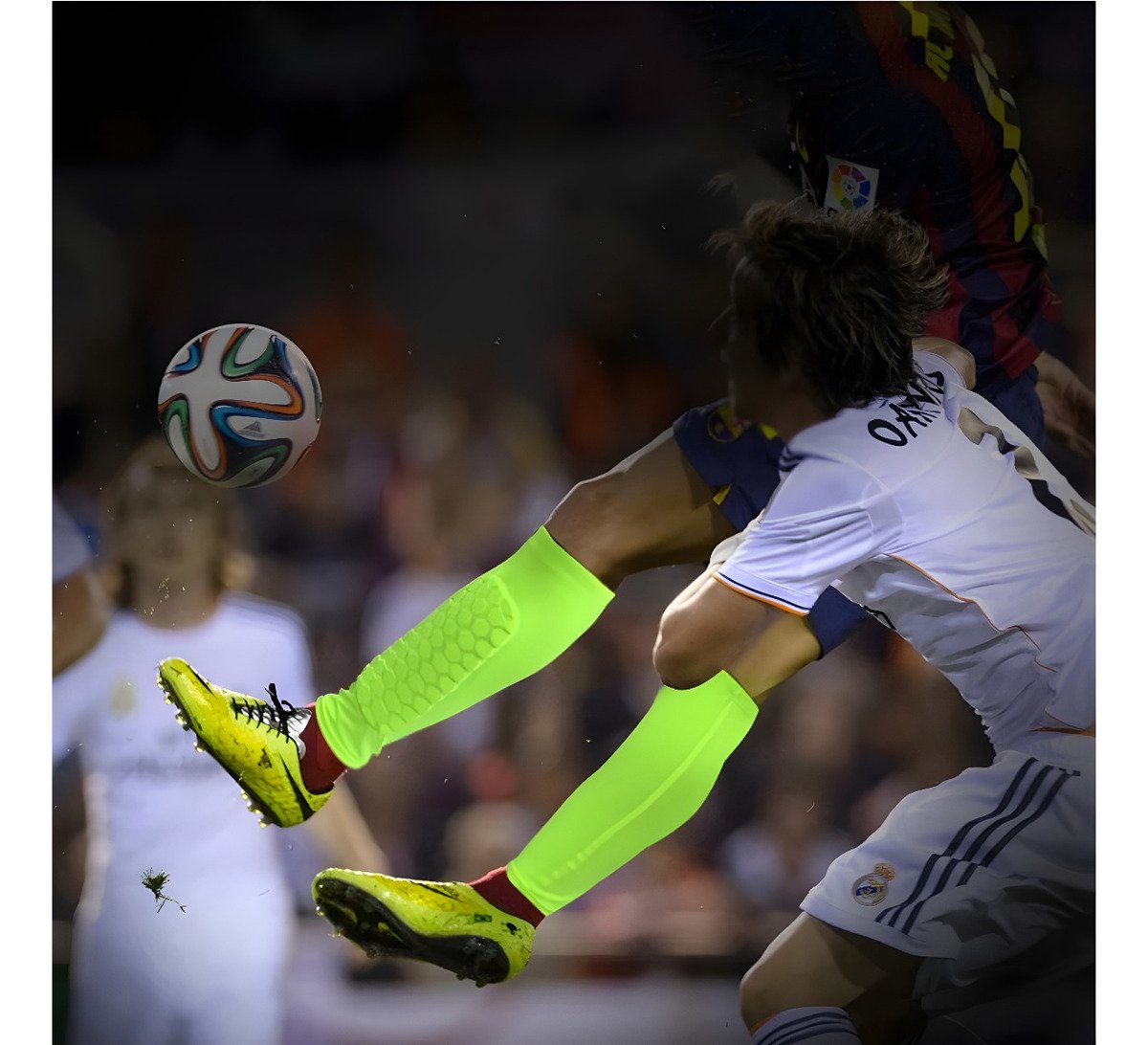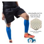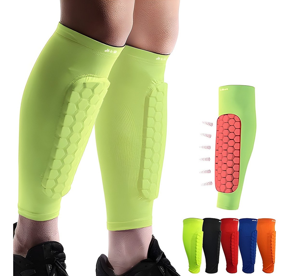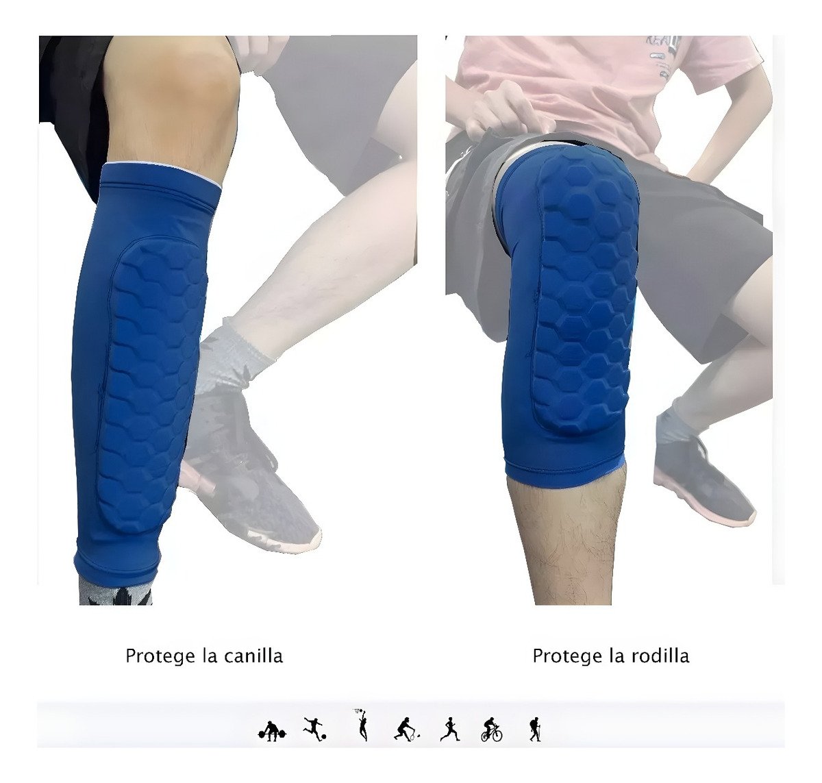 Bloque Anticolisión de Esponja: Equipadas con un bloque de esponja en forma de panal, estas canilleras ofrecen una textura y dureza óptimas para una protección superior. Además, las mangas de compresión envuelven y sostienen tus piernas, facilitando la transpiración y el confort.