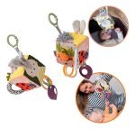 Este cubo didáctico de tela suave está lleno de texturas, sonidos y sorpresas que despiertan la curiosidad natural de los bebés: