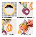 Estimulación auditiva y táctil: con campanas internas y variedad de tejidos, ayuda al desarrollo del oído y el sentido del tacto.