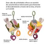 El Cubo Sensorial de Actividades Taf Toys es la solución perfecta para acompañar el desarrollo de tu pequeño de forma divertida y segura.