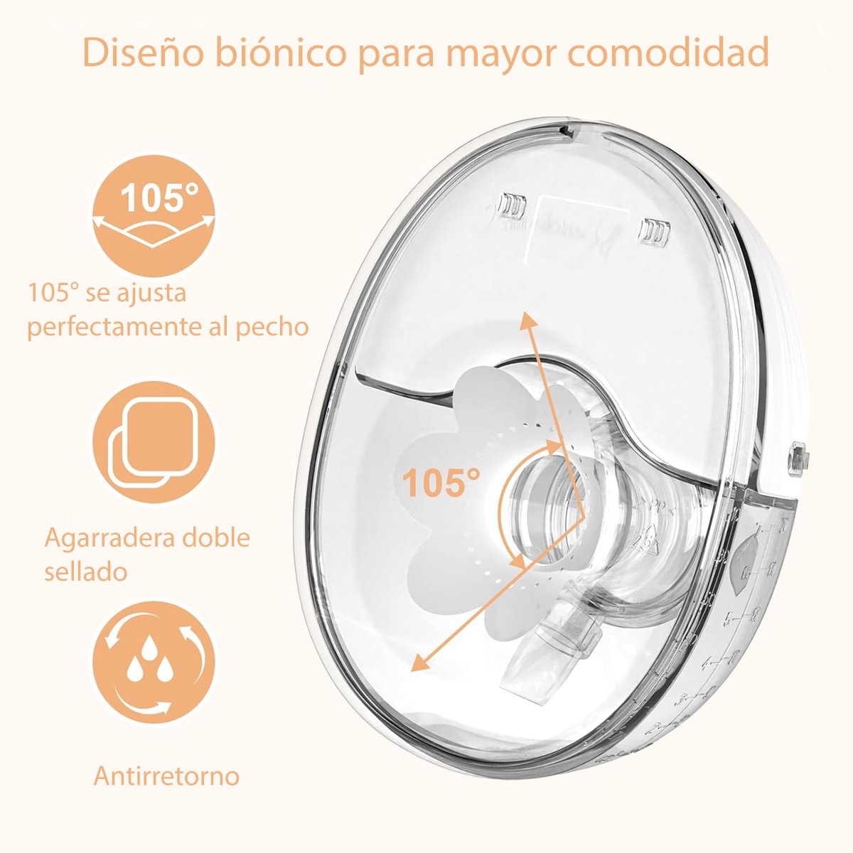 Equipado con 4 modos y 12 niveles de succión ajustables, este extractor te permite personalizar tu experiencia de lactancia, asegurando la máxima eficiencia y confort. Su diseño discreto en forma de concha, se adapta perfectamente a tu sostén, dándote la libertad de extraer leche en cualquier lugar, ya sea en casa, en el trabajo o mientras viajas.