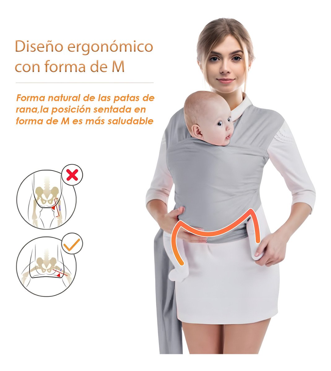 fular portabebé ergonómico, fular ajustable, portabebé de algodón, porteo seguro, desarrollo saludable bebé, manos libres, cobertura lactancia, fácil de usar.