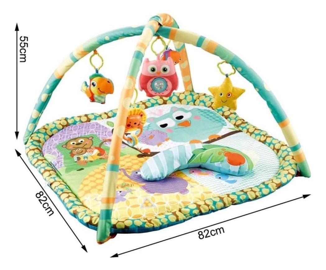 El arco ajustable en altura permite adaptarse al crecimiento de tu bebé, mientras que los sonajeros y juguetes colgantes promueven la coordinación mano-ojo y la exploración táctil. Incluye un cojín de apoyo que facilita el tiempo boca abajo, ayudando a fortalecer los músculos esenciales para el desarrollo motor. Fabricado con materiales no tóxicos, es seguro y duradero.