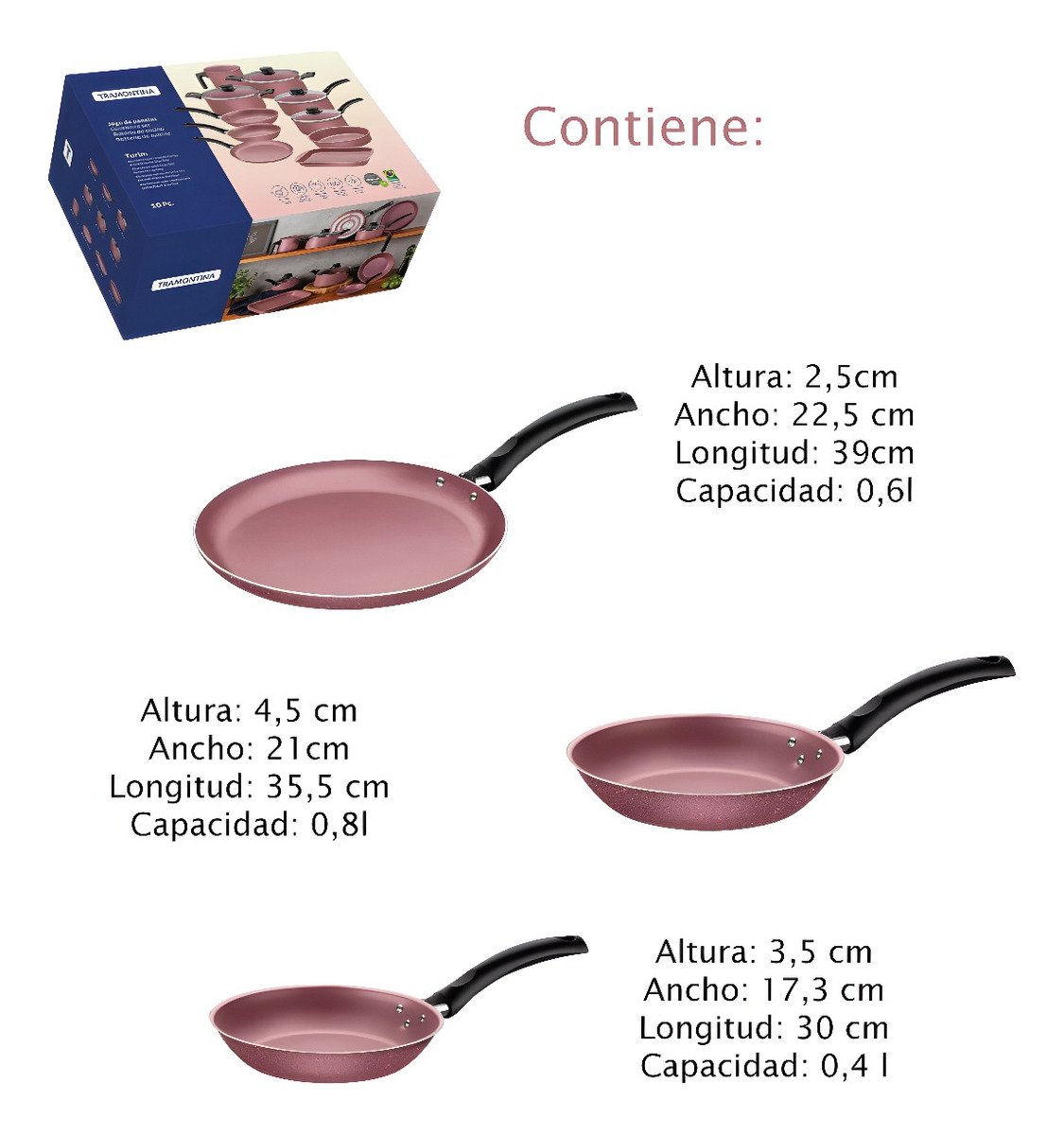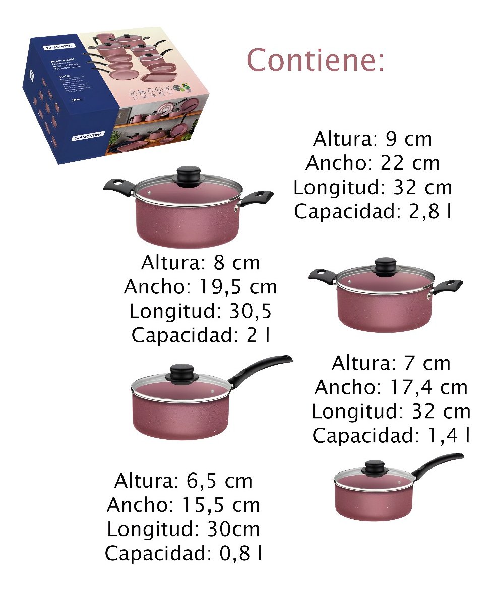 Juego De Bateria Olla Tramontina Turim Cocina Antiadherente