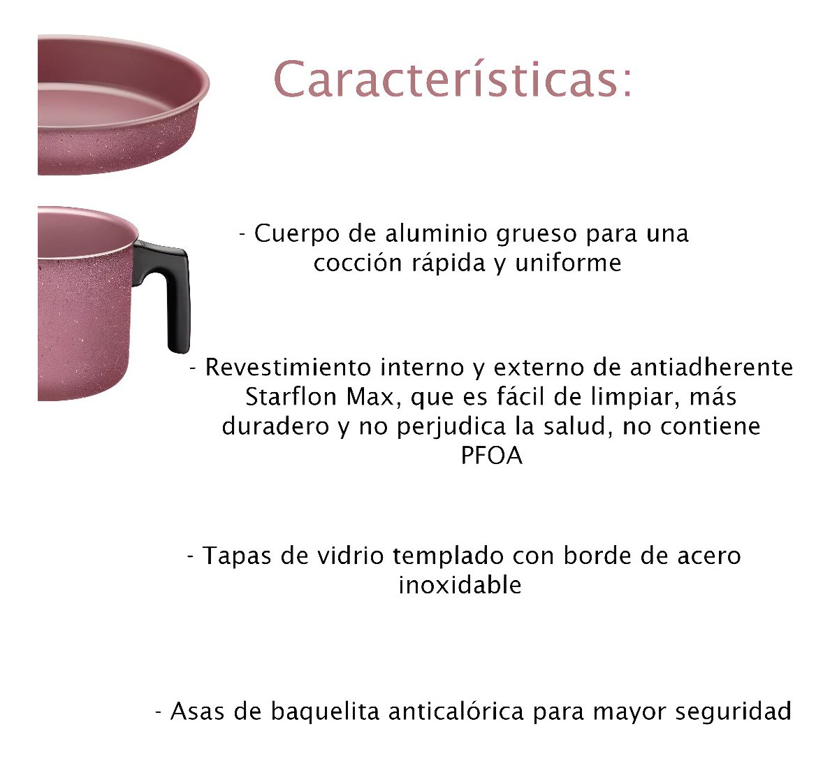 Asas y mangos anti-térmicos que no se calientan, ofreciendo mayor seguridad y comodidad durante el manejo.
