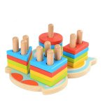 Incluye 16 figuras de madera de colores variados y diferentes formas y tamaños, junto con un soporte de clasificación especial. Ayuda a los niños a aprender sobre formas y colores, mejorando sus habilidades motoras.