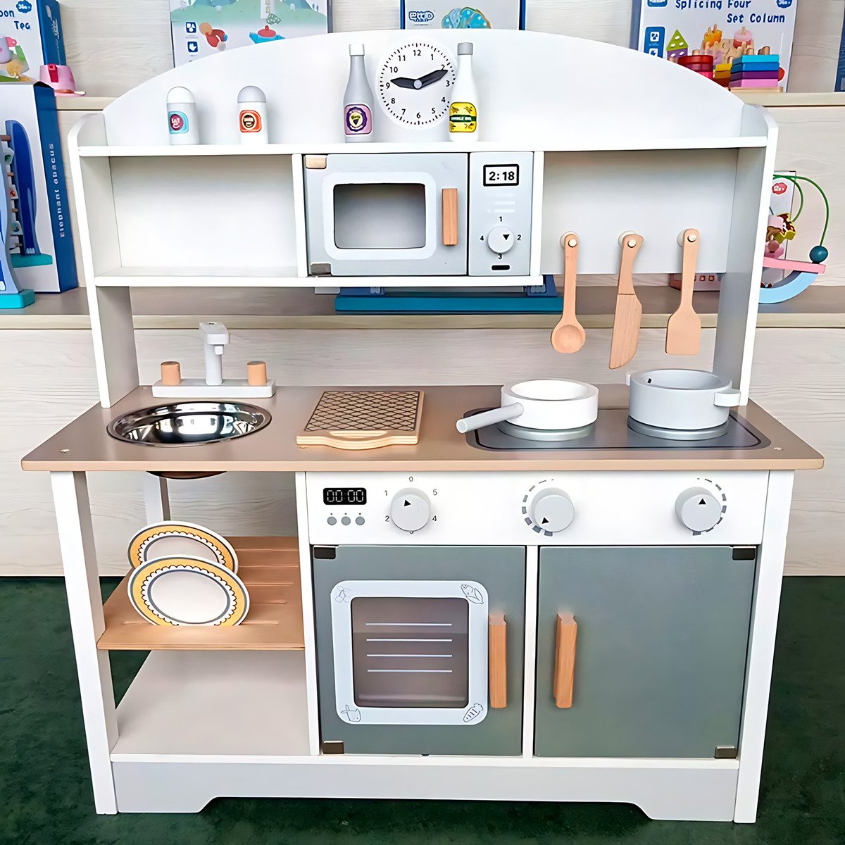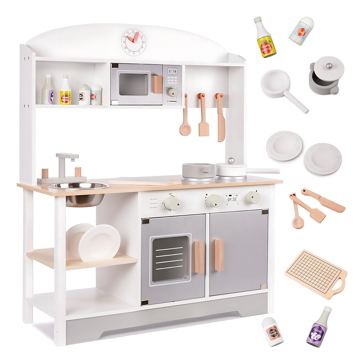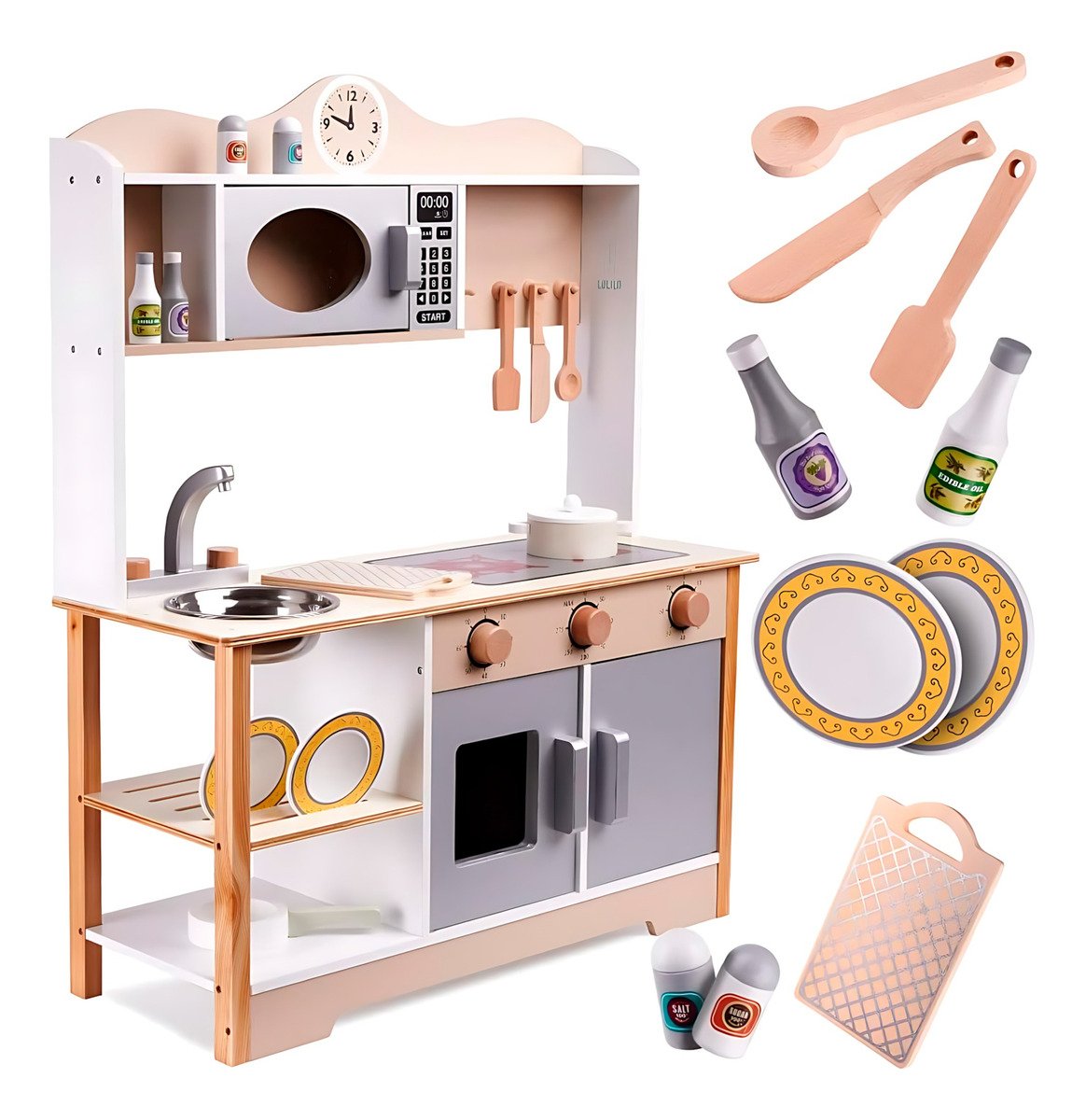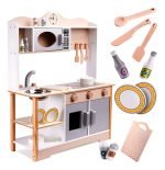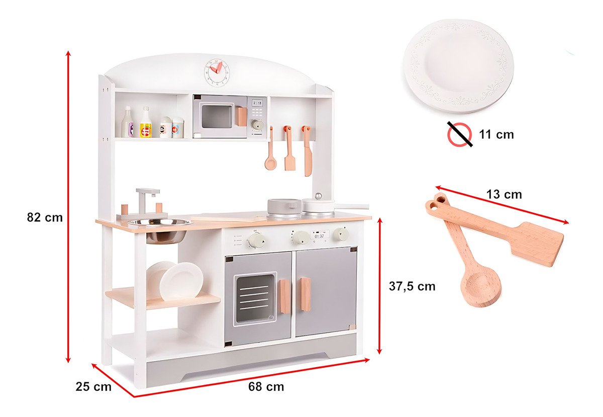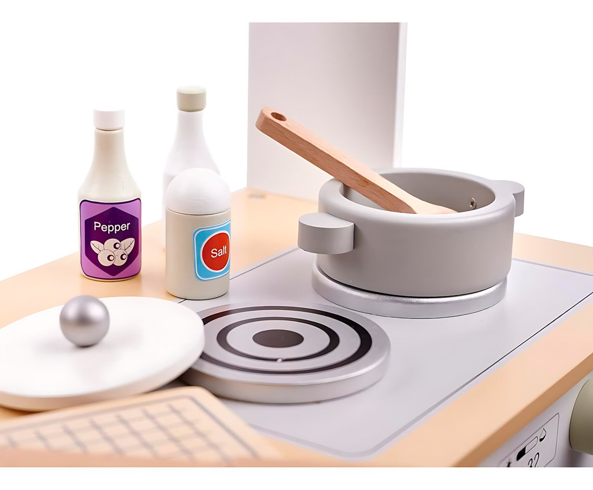 Dale a tu pequeño la oportunidad de convertirse en un gran chef con esta cocina de juguete de madera hiperrealista. Un espacio de juego educativo que fomenta la creatividad, el aprendizaje de roles y el desarrollo de habilidades motoras y sociales.