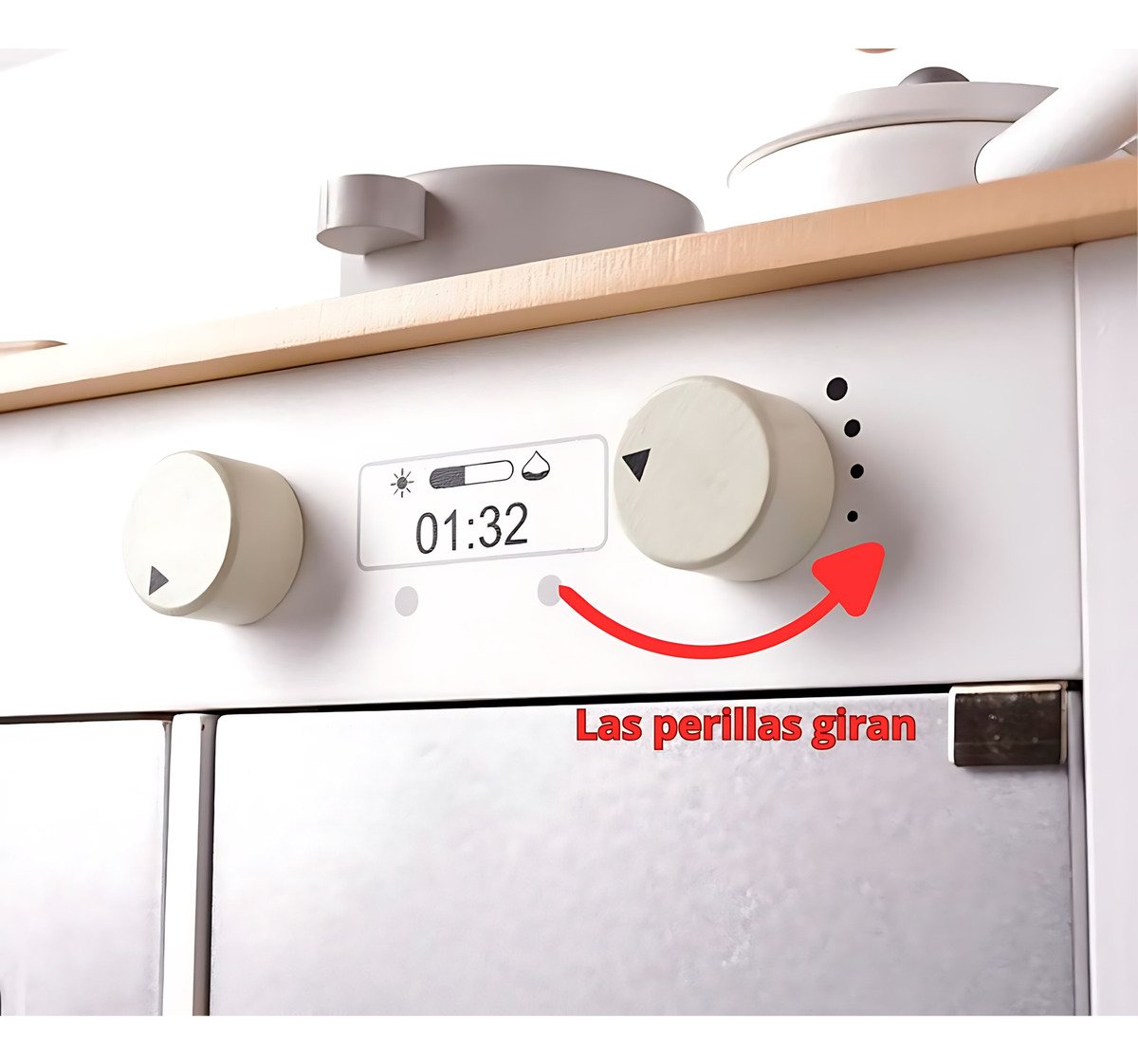 Microondas incorporado y reloj decorativo para mayor realismo.