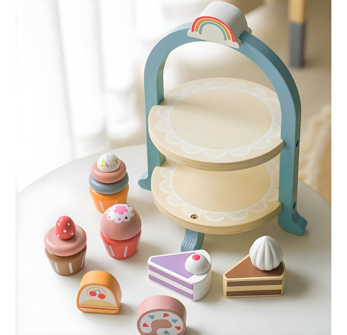 Descubre la magia del juego de roles con nuestro exclusivo Juego de Postres de Madera Montessori. ¡Transforma la diversión de tus pequeños con este juguete estimulante!