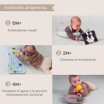Este kit también cuenta con tres pelotas sensoriales que proporcionan una variedad de texturas y sonidos para estimular los sentidos de tu bebé, promoviendo las habilidades motoras finas y la coordinación mano-ojo. La placa móvil permite un juego dinámico, asegurando que tu bebé se mantenga involucrado y activo. Fabricado con materiales 100% seguros y duraderos, este kit es fácil de limpiar y usar durante mucho tiempo, libre de BPA y ftalatos.