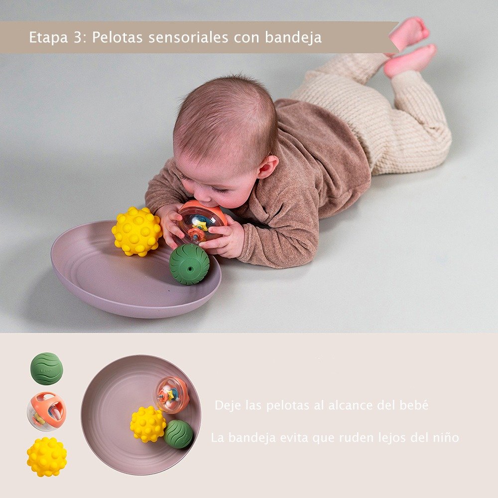 Tres pelotas sensoriales: Promueven la exploración táctil y la coordinación mano-ojo.