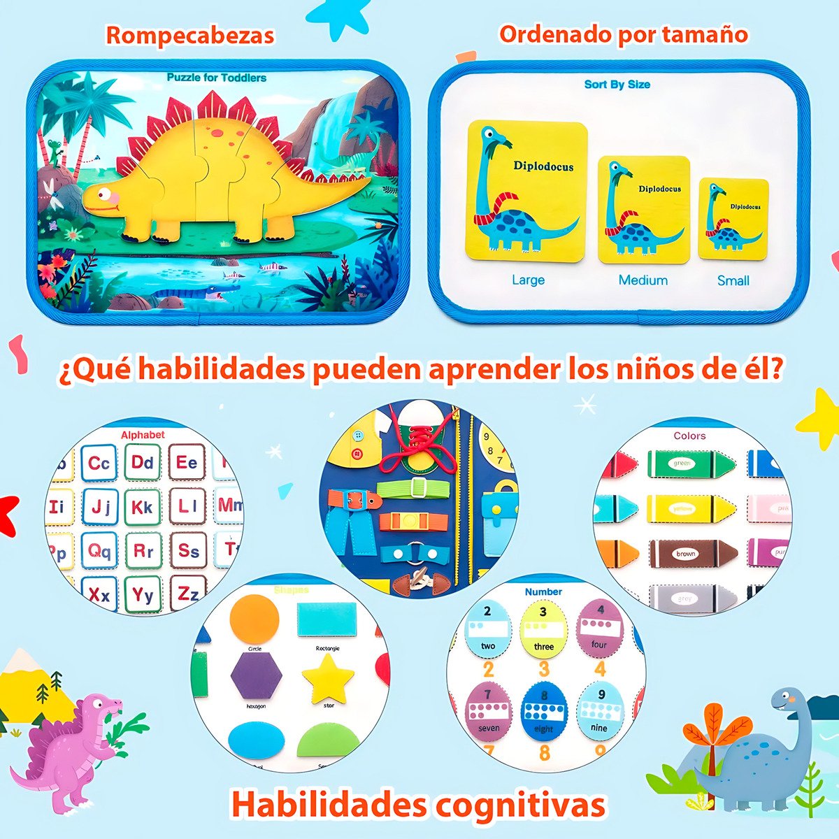 75 piezas didácticas para aprender colores, números, formas y letras