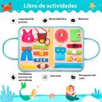 Con 8 actividades sensoriales diferentes, este juguete Montessori en forma de libro fomenta el desarrollo cognitivo y la motricidad fina desde los primeros meses.