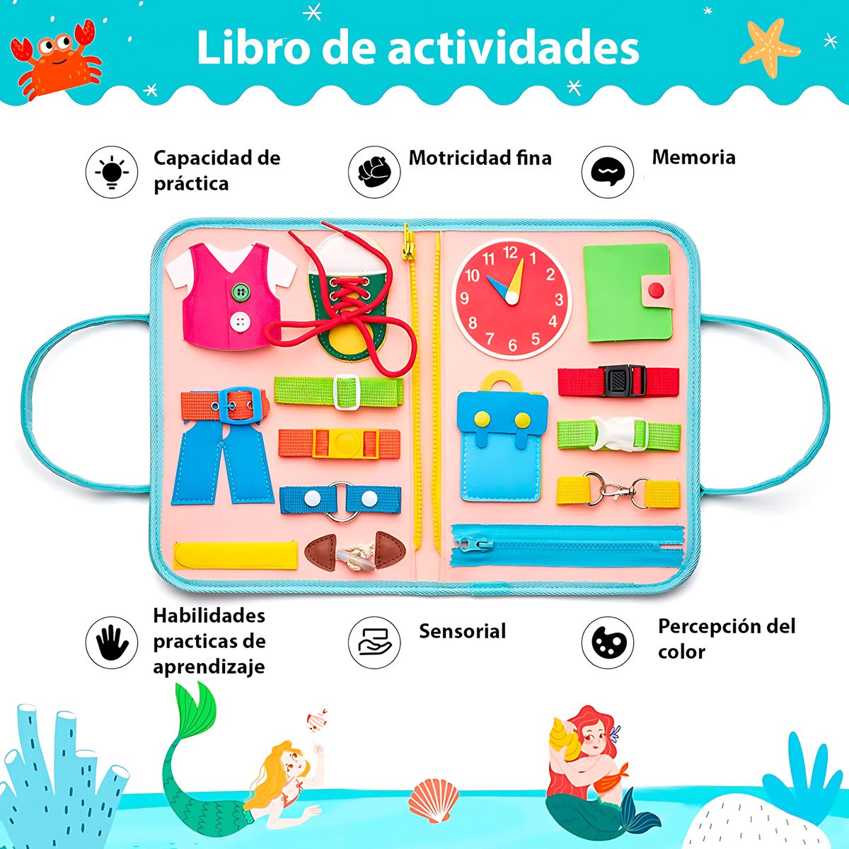 Juguete Didáctico Sensorial Montessori Libro Interactivo Bebe Aprendizaje Viaje