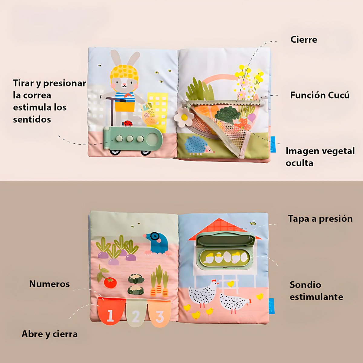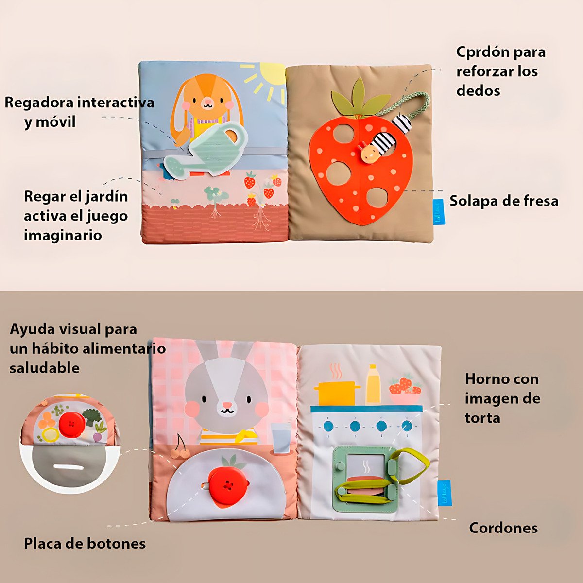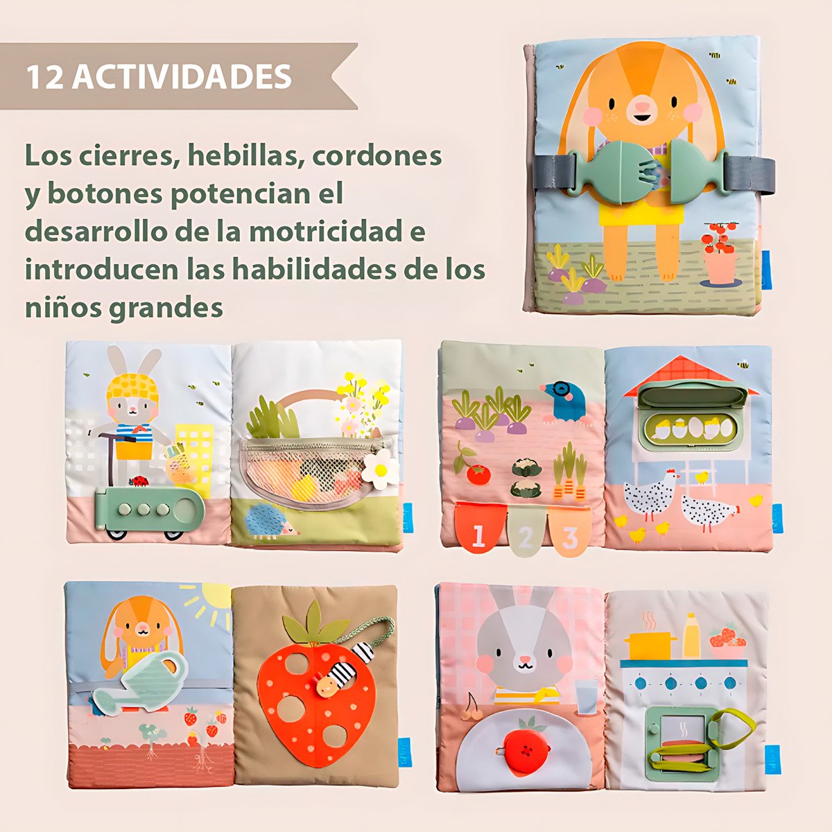 Todos los elementos están pensados para mejorar la coordinación mano-ojo, estimular la curiosidad natural del niño y fomentar la independencia en tareas cotidianas como vestirse solo.