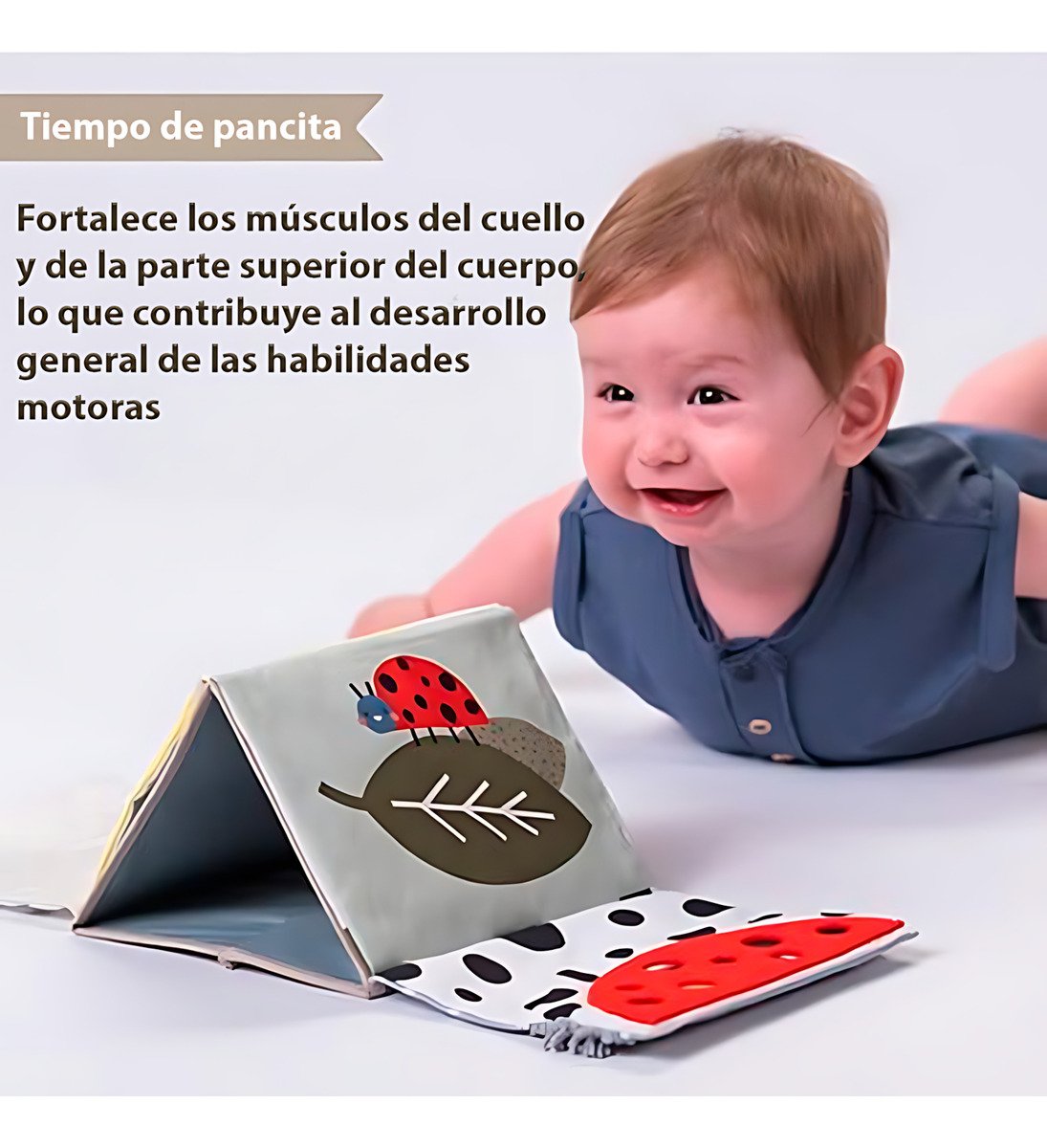 Con el Libro Sensorial para Bebés, cada página es una aventura multisensorial que estimula su mente, motiva el tiempo de barriga y fortalece sus habilidades desde el primer mes.