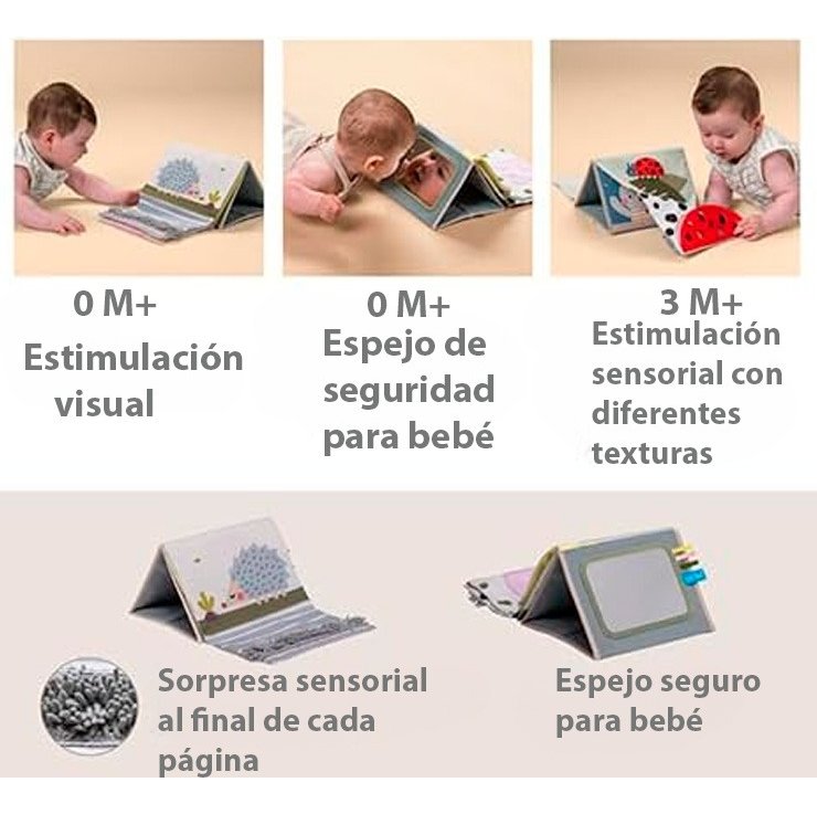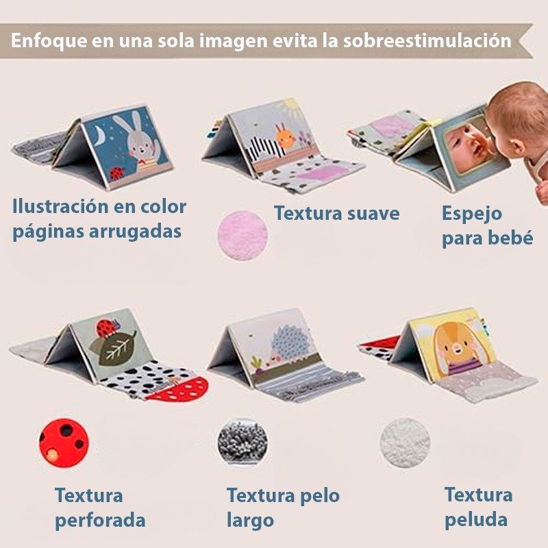 Libro Sensorial Bebé con Espejo y Texturas – Didáctico Estimulación 0-6M