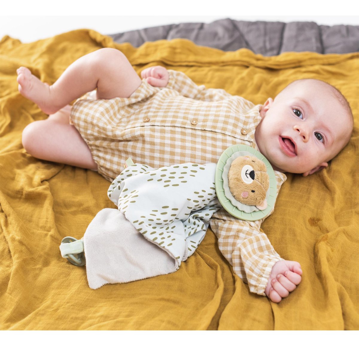 Manta de Apego Bebé León con Mordedor Suave y Porta Chupete – Harry el León