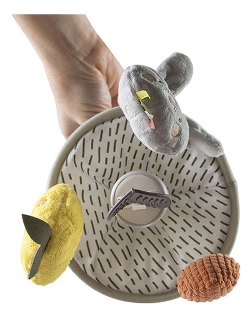 Proporciona una experiencia multisensorial con una campana y un mordedor de hojas.