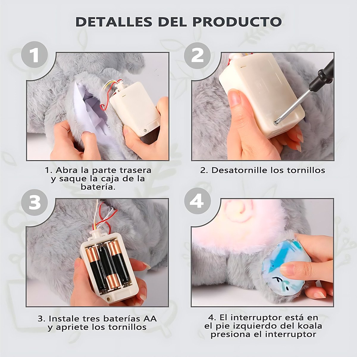 Peluche De Apego Antiansiedad Koala Con Luz, Sonido Y Respiración