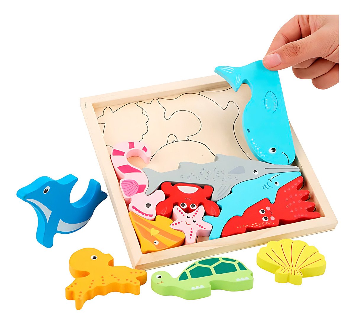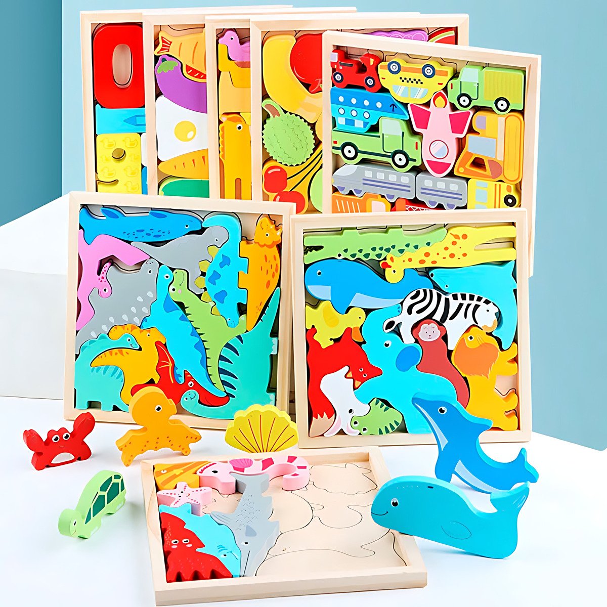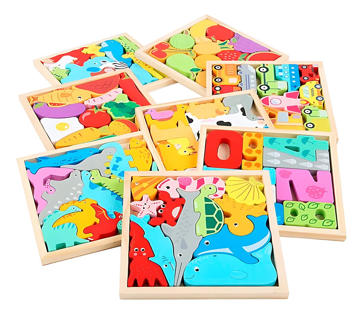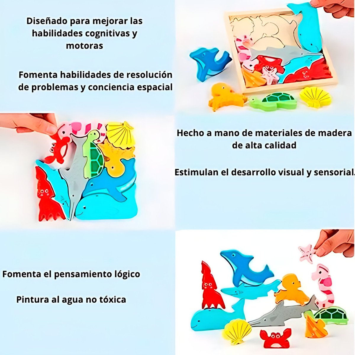 Puzzle 3D de Madera Infantil | Rompecabezas Didáctico Montessori | Desarrollo Cognitivo