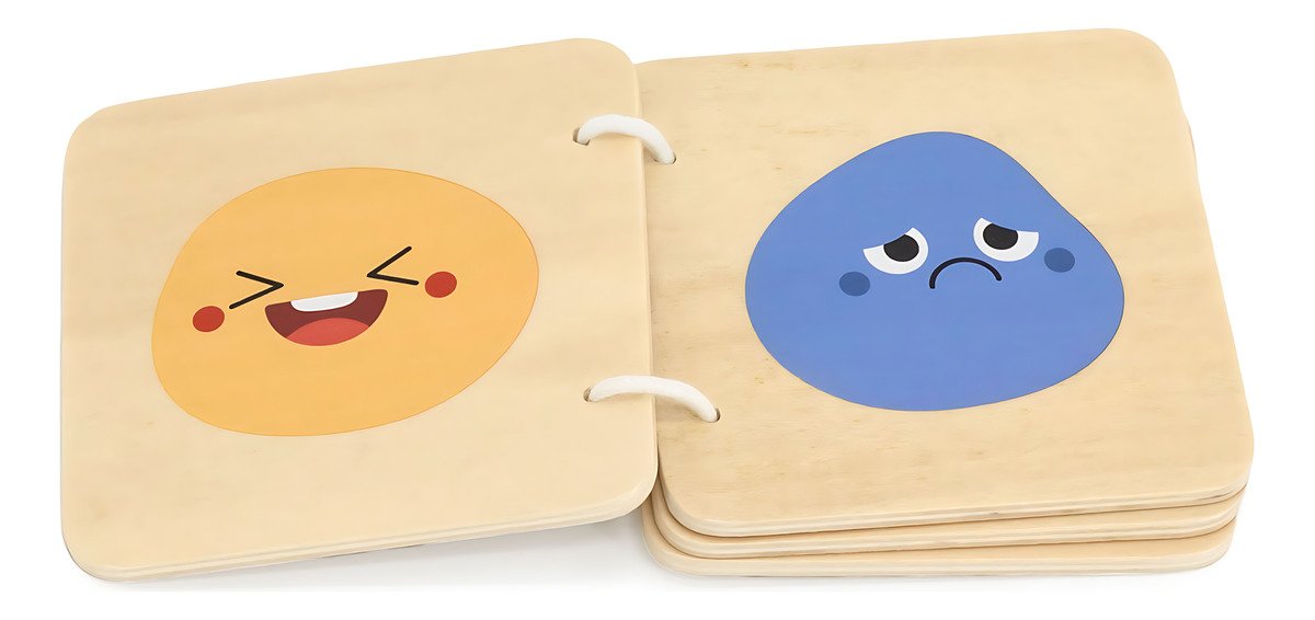 Libro de Madera de Emociones: Aprende las emociones básicas con colores específicos, apoyando la inteligencia emocional y el reconocimiento cromático.