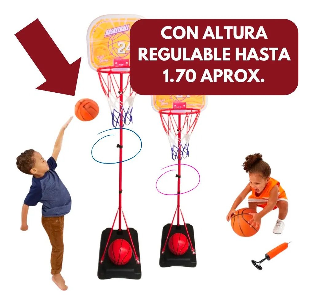 Aro De Básquet Para Niños Regulable 170cm Con Pelota E Inflador Interior Exterior