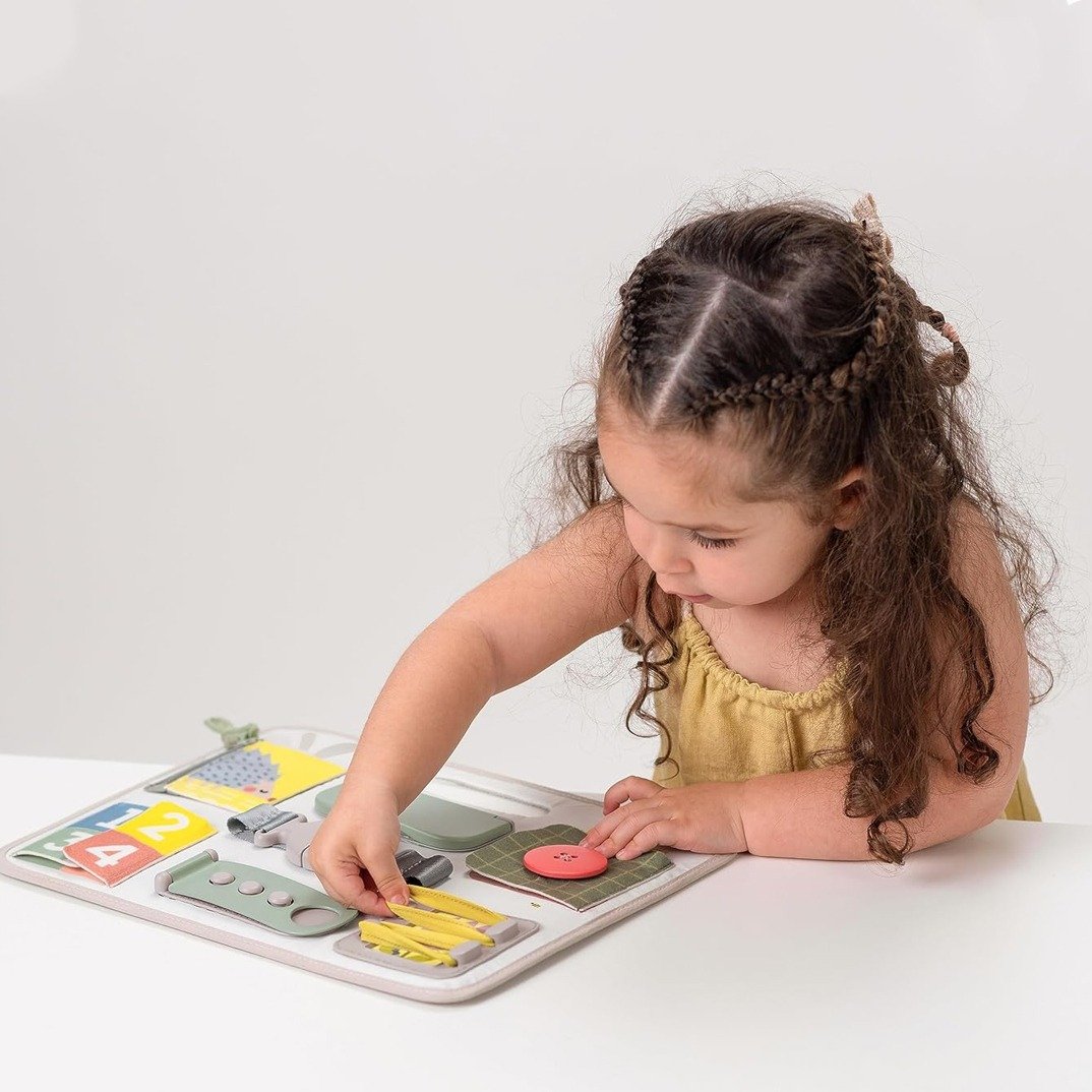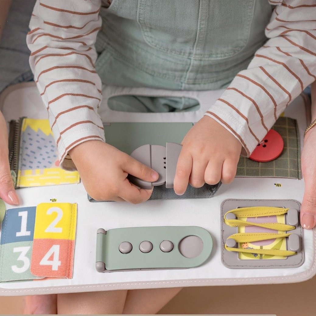Con una variedad de actividades interactivas, este tablero incluye cremallera, botón XL, solapas de velcro, cordones, cubierta a presión, hebilla, correa de tirar, actividades de peek-a-boo, números, cantidades y conteo. Cada elemento está cuidadosamente diseñado para mejorar las habilidades motoras finas, la destreza, la resolución de problemas y la coordinación mano-ojo.